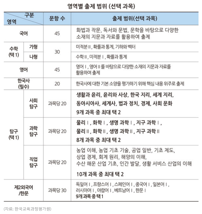 학생들의 균형 있는 영어능력을 향상시킬 수 있는 학교 수업을 유도하기 위해 2018학년도 수능부터 도입된 영어 영역은 절대평가는 올해도 유지된다. 필수로 지정된 한국사 영역의 경우, 변별이 아닌 우리 역사에 대한 기본 소양을 평가하고 수험 부담이 최소화되도록 핵심적이고 중요한 내용 중심으로 평이하게 출제될 예정이다.